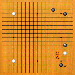 黒△とハサんだところです。A~Cの選択肢の中に新手があります。 |