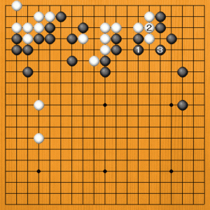 つまり、黒1のケイマが正しい応手でした。白2と出られても、黒3とオサえてきれいに止まっています。 |