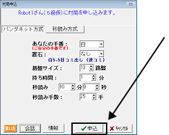 Robot1~Robot30がリストにありますので、いずれかを選択し、[対局申込へ]ボタンをクリックします。